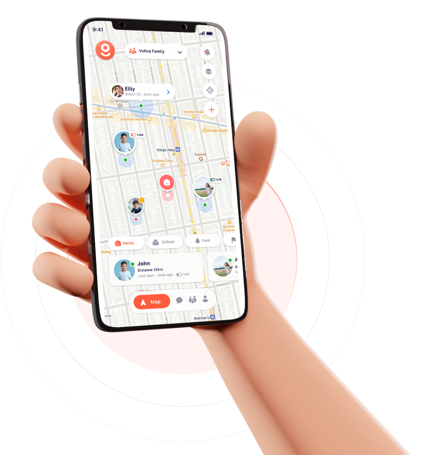 Define favorite spots on the map, like school, a friend's house, or the park. The moment your child enters or leaves these zones, you'll know!